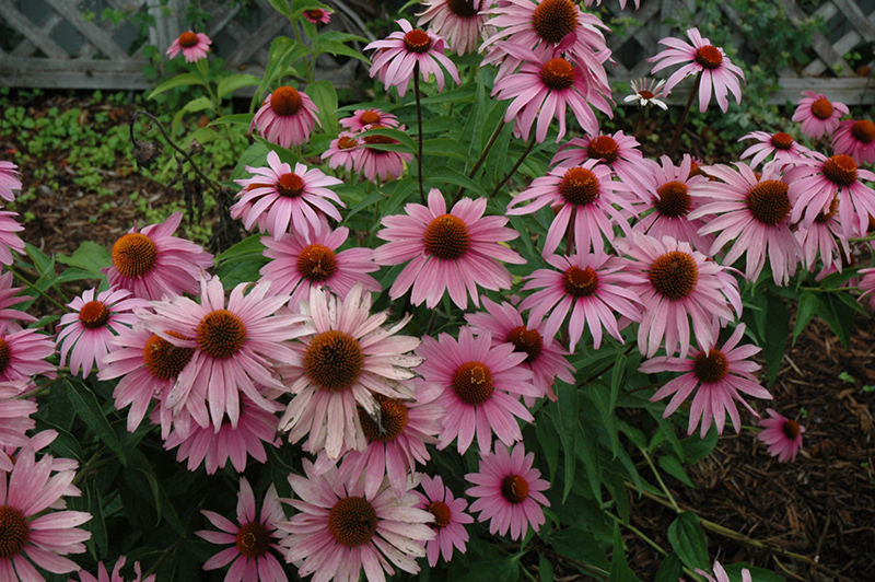 Hardiness Zone: 3a Description: This stunning echinacea produces large flowers that are magenta pink with coppery centers; a perfect choice for planting in groups, along border edges, or in containers; great for flower arrangements; attracts pollinators Ornamental Features Magnus Superior Coneflower has masses of beautiful lightly-scented hot pink daisy flowers with coppery-bronze eyes at the ends of the stems from mid summer to early fall, which are most effective when planted in groupings. The flowers are excellent for cutting. Its pointy leaves remain dark green in color throughout the season. Landscape Attributes Magnus Superior Coneflower is an herbaceous perennial with an upright spreading habit of growth. Its medium texture blends into the garden, but can always be balanced by a couple of finer or coarser plants for an effective composition. This is a relatively low maintenance plant, and is best cleaned up in early spring before it resumes active growth for the season. It is a good choice for attracting birds and butterflies to your yard, but is not particularly attractive to deer who tend to leave it alone in favor of tastier treats. It has no significant negative characteristics. Magnus Superior Coneflower is recommended for the following landscape applications; Planting & Growing Magnus Superior Coneflower will grow to be about 30 inches tall at maturity extending to 4 feet tall with the flowers, with a spread of 24 inches. It grows at a medium rate, and under ideal conditions can be expected to live for approximately 10 years. As an herbaceous perennial, this plant will usually die back to the crown each winter, and will regrow from the base each spring. Be careful not to disturb the crown in late winter when it may not be readily seen! This plant should only be grown in full sunlight. It is very adaptable to both dry and moist locations, and should do just fine under typical garden conditions. It is considered to be drought-tolerant, and thus makes an ideal choice for a low-water garden or xeriscape application. It is not particular as to soil type or pH. It is highly tolerant of urban pollution and will even thrive in inner city environments. This is a selection of a native North American species. It can be propagated by division; however, as a cultivated variety, be aware that it may be subject to certain restrictions or prohibitions on propagation. Magnus Superior Coneflower is a fine choice for the garden, but it is also a good selection for planting in outdoor pots and containers. With its upright habit of growth, it is best suited for use as a 'thriller' in the 'spiller-thriller-filler' container combination; plant it near the center of the pot, surrounded by smaller plants and those that spill over the edges. It is even sizeable enough that it can be grown alone in a suitable container. Note that when growing plants in outdoor containers and baskets, they may require more frequent waterings than they would in the yard or garden.![]()