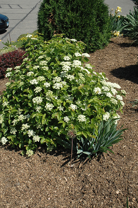 Hardiness Zone: 3a Other Names: Arrowwood Viburnum Brand: Proven Winners Description: A compact garden shrub covered in showy flat-topped clusters of creamy white flowers in late spring followed by striking blue berries, attractive to birds, reliable fall color; a rugged and adaptable shrub, ideal for the garden or as a natural hedge Ornamental Features Blue Muffin® Viburnum is blanketed in stunning creamy white flat-top flowers at the ends of the branches in late spring. The powder blue fruits are held in abundance in spectacular clusters from early to late fall. It has forest green deciduous foliage. The serrated oval leaves turn an outstanding deep purple in the fall. Landscape Attributes Blue Muffin® Viburnum is a multi-stemmed deciduous shrub with an upright spreading habit of growth. Its average texture blends into the landscape, but can be balanced by one or two finer or coarser trees or shrubs for an effective composition. This is a relatively low maintenance shrub, and should only be pruned after flowering to avoid removing any of the current season's flowers. It is a good choice for attracting birds to your yard, but is not particularly attractive to deer who tend to leave it alone in favor of tastier treats. It has no significant negative characteristics. Blue Muffin® Viburnum is recommended for the following landscape applications; Planting & Growing Blue Muffin® Viburnum will grow to be about 8 feet tall at maturity, with a spread of 7 feet. It tends to be a little leggy, with a typical clearance of 2 feet from the ground, and is suitable for planting under power lines. It grows at a medium rate, and under ideal conditions can be expected to live for 40 years or more. This shrub does best in full sun to partial shade. It prefers to grow in average to moist conditions, and shouldn't be allowed to dry out. It is not particular as to soil type or pH. It is highly tolerant of urban pollution and will even thrive in inner city environments. This is a selection of a native North American species.![]()