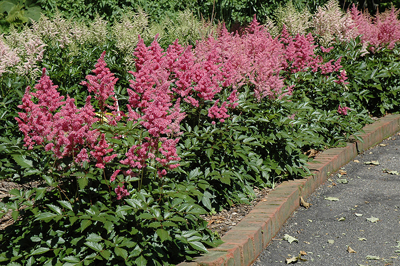 Hardiness Zone: 3a Other Names: False Spirea Description: A low maintenance, shade loving variety, featuring compact plants; bubblegum pink plumes rise above mounds of ferny, toothed foliage; an excellent addition to shaded gardens, borders, containers or fresh-cut bouquets; low maintenance Ornamental Features Rheinland Astilbe has masses of beautiful plumes of pink flowers at the ends of the stems from late spring to early summer, which are most effective when planted in groupings. The flowers are excellent for cutting. Its serrated ferny compound leaves remain forest green in color throughout the season. Landscape Attributes Rheinland Astilbe is an herbaceous perennial with a mounded form. Its relatively fine texture sets it apart from other garden plants with less refined foliage. This is a relatively low maintenance plant, and is best cleaned up in early spring before it resumes active growth for the season. It is a good choice for attracting butterflies to your yard, but is not particularly attractive to deer who tend to leave it alone in favor of tastier treats. It has no significant negative characteristics. Rheinland Astilbe is recommended for the following landscape applications; Planting & Growing Rheinland Astilbe will grow to be about 18 inches tall at maturity extending to 24 inches tall with the flowers, with a spread of 24 inches. When grown in masses or used as a bedding plant, individual plants should be spaced approximately 24 inches apart. It grows at a medium rate, and under ideal conditions can be expected to live for approximately 10 years. As an herbaceous perennial, this plant will usually die back to the crown each winter, and will regrow from the base each spring. Be careful not to disturb the crown in late winter when it may not be readily seen! This plant does best in partial shade to shade. It requires an evenly moist well-drained soil for optimal growth. It is very fussy about its soil conditions and must have rich, acidic soils to ensure success, and is subject to chlorosis (yellowing) of the foliage in alkaline soils. It is somewhat tolerant of urban pollution, and will benefit from being planted in a relatively sheltered location. Consider applying a thick mulch around the root zone over the growing season to conserve soil moisture. This is a selected variety of a species not originally from North America. It can be propagated by division; however, as a cultivated variety, be aware that it may be subject to certain restrictions or prohibitions on propagation. Rheinland Astilbe is a fine choice for the garden, but it is also a good selection for planting in outdoor pots and containers. It can be used either as 'filler' or as a 'thriller' in the 'spiller-thriller-filler' container combination, depending on the height and form of the other plants used in the container planting. Note that when growing plants in outdoor containers and baskets, they may require more frequent waterings than they would in the yard or garden.![]()
