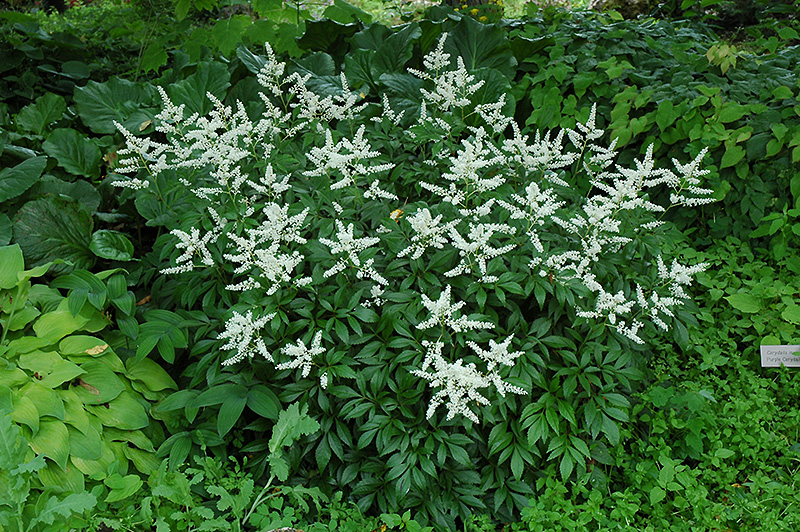 Hardiness Zone: 2b Other Names: False Spirea Description: An upright-mounded, low maintenance and shade loving variety; pure white plumes rise above mounds of ferny foliage; an excellent addition to shaded gardens, borders, containers or moon gardens; low maintenance Ornamental Features Bridal Veil Astilbe has masses of beautiful plumes of white flowers at the ends of the stems from late spring to early summer, which are most effective when planted in groupings. The flowers are excellent for cutting. Its ferny compound leaves remain emerald green in color throughout the season. Landscape Attributes Bridal Veil Astilbe is an herbaceous perennial with an upright spreading habit of growth. Its relatively fine texture sets it apart from other garden plants with less refined foliage. This is a relatively low maintenance plant, and is best cleaned up in early spring before it resumes active growth for the season. It is a good choice for attracting butterflies to your yard, but is not particularly attractive to deer who tend to leave it alone in favor of tastier treats. It has no significant negative characteristics. Bridal Veil Astilbe is recommended for the following landscape applications; Planting & Growing Bridal Veil Astilbe will grow to be about 12 inches tall at maturity extending to 18 inches tall with the flowers, with a spread of 24 inches. When grown in masses or used as a bedding plant, individual plants should be spaced approximately 18 inches apart. Its foliage tends to remain dense right to the ground, not requiring facer plants in front. It grows at a medium rate, and under ideal conditions can be expected to live for approximately 10 years. As an herbaceous perennial, this plant will usually die back to the crown each winter, and will regrow from the base each spring. Be careful not to disturb the crown in late winter when it may not be readily seen! This plant does best in partial shade to shade. It requires an evenly moist well-drained soil for optimal growth. It is very fussy about its soil conditions and must have rich, acidic soils to ensure success, and is subject to chlorosis (yellowing) of the foliage in alkaline soils. It is somewhat tolerant of urban pollution, and will benefit from being planted in a relatively sheltered location. Consider applying a thick mulch around the root zone over the growing season to conserve soil moisture. This particular variety is an interspecific hybrid. It can be propagated by division; however, as a cultivated variety, be aware that it may be subject to certain restrictions or prohibitions on propagation. Bridal Veil Astilbe is a fine choice for the garden, but it is also a good selection for planting in outdoor pots and containers. It is often used as a 'filler' in the 'spiller-thriller-filler' container combination, providing a mass of flowers against which the larger thriller plants stand out. Note that when growing plants in outdoor containers and baskets, they may require more frequent waterings than they would in the yard or garden.![]()