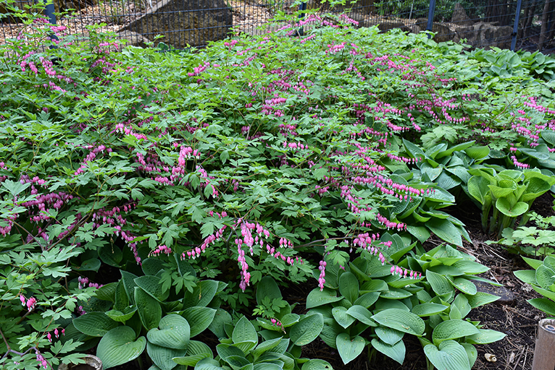 Hardiness Zone: 1b Other Names: Old Fashioned Bleeding Heart Description: Bushy upright mounded selection features blue-green fern-like foliage and arching stems of heart shaped locket flowers with white protruding petals; excellent for shaded borders and beds; beautiful cut flower; goes into summer dormancy Ornamental Features Common Bleeding Heart features delicate nodding pink heart-shaped flowers with white tips dangling from the stems from late spring to early summer. Its ferny compound leaves remain bluish-green in color throughout the season. Landscape Attributes Common Bleeding Heart is an herbaceous perennial with a mounded form. Its relatively fine texture sets it apart from other garden plants with less refined foliage. This plant will require occasional maintenance and upkeep, and should be cut back in late fall in preparation for winter. It is a good choice for attracting butterflies to your yard, but is not particularly attractive to deer who tend to leave it alone in favor of tastier treats. It has no significant negative characteristics. Common Bleeding Heart is recommended for the following landscape applications; Planting & Growing Common Bleeding Heart will grow to be about 3 feet tall at maturity, with a spread of 3 feet. When grown in masses or used as a bedding plant, individual plants should be spaced approximately 30 inches apart. It grows at a medium rate, and under ideal conditions can be expected to live for approximately 15 years. As an herbaceous perennial, this plant will usually die back to the crown each winter, and will regrow from the base each spring. Be careful not to disturb the crown in late winter when it may not be readily seen! As this plant tends to go dormant in summer, it is best interplanted with late-season bloomers to hide the dying foliage. This plant does best in partial shade to shade. It prefers to grow in average to moist conditions, and shouldn't be allowed to dry out. It is not particular as to soil pH, but grows best in rich soils. It is somewhat tolerant of urban pollution. Consider applying a thick mulch around the root zone over the growing season to conserve soil moisture. This species is not originally from North America. It can be propagated by division.