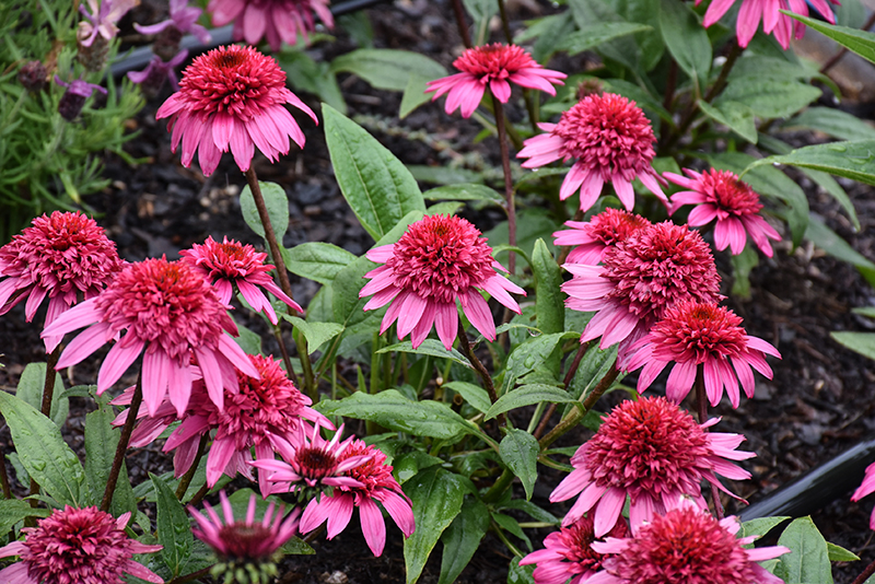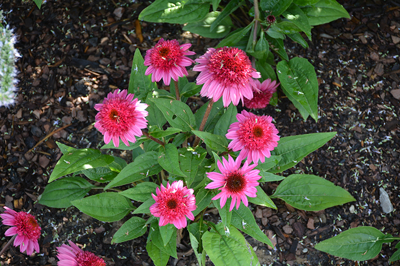 Hardiness Zone: 4a Group/Class: Double Scoop Series Brand: Ball Description: Large, fully double blooms of hot pink and red, on strong stemmed, well branched plants with improved flower count; more reliable first year flowering; attracts pollinators and feeds the birds in winter; use in naturalized areas with other native plants Ornamental Features Double Scoop™ Watermelon Deluxe Coneflower has masses of beautiful lightly-scented double red daisy flowers with hot pink overtones and black eyes at the ends of the stems from late spring to late summer, which are most effective when planted in groupings. The flowers are excellent for cutting. Its pointy leaves remain green in color throughout the season. Landscape Attributes Double Scoop™ Watermelon Deluxe Coneflower is an herbaceous perennial with an upright spreading habit of growth. Its medium texture blends into the garden, but can always be balanced by a couple of finer or coarser plants for an effective composition. This is a relatively low maintenance plant, and is best cleaned up in early spring before it resumes active growth for the season. It is a good choice for attracting butterflies to your yard, but is not particularly attractive to deer who tend to leave it alone in favor of tastier treats. It has no significant negative characteristics. Double Scoop™ Watermelon Deluxe Coneflower is recommended for the following landscape applications; Planting & Growing Double Scoop™ Watermelon Deluxe Coneflower will grow to be about 20 inches tall at maturity, with a spread of 20 inches. When grown in masses or used as a bedding plant, individual plants should be spaced approximately 18 inches apart. Its foliage tends to remain dense right to the ground, not requiring facer plants in front. It grows at a medium rate, and under ideal conditions can be expected to live for approximately 10 years. As an herbaceous perennial, this plant will usually die back to the crown each winter, and will regrow from the base each spring. Be careful not to disturb the crown in late winter when it may not be readily seen! This plant should only be grown in full sunlight. It is very adaptable to both dry and moist locations, and should do just fine under typical garden conditions. It is considered to be drought-tolerant, and thus makes an ideal choice for a low-water garden or xeriscape application. This plant should not require much in the way of fertilizing once established, although it may appreciate a shot of general-purpose fertilizer from time to time early in the growing season. It is not particular as to soil type or pH. It is highly tolerant of urban pollution and will even thrive in inner city environments. This particular variety is an interspecific hybrid. It can be propagated by division; however, as a cultivated variety, be aware that it may be subject to certain restrictions or prohibitions on propagation. Double Scoop™ Watermelon Deluxe Coneflower is a fine choice for the garden, but it is also a good selection for planting in outdoor pots and containers. With its upright habit of growth, it is best suited for use as a 'thriller' in the 'spiller-thriller-filler' container combination; plant it near the center of the pot, surrounded by smaller plants and those that spill over the edges. Note that when growing plants in outdoor containers and baskets, they may require more frequent waterings than they would in the yard or garden.![]()