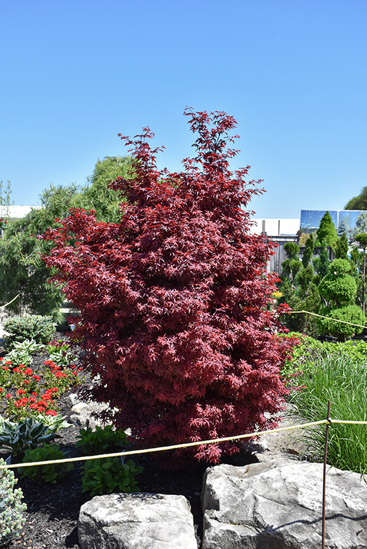 Hardiness Zone: 5b Other Names: Red Sentinel Japanese Maple Description: True to its name, this variety maintains a somewhat columnar form, with burgundy to red foliage all season long, ending in a fiery display in fall; the dense and narrow upright form makes it wonderfully useful for many garden applications Ornamental Features Twombly's Red Sentinel Japanese Maple is primarily valued in the landscape or garden for its rigidly columnar form. It has attractive burgundy deciduous foliage which emerges red in spring. The small lobed palmate leaves are highly ornamental and turn an outstanding crimson in the fall. Landscape Attributes Twombly's Red Sentinel Japanese Maple is a dense deciduous tree with a strong central leader and a narrowly upright and columnar growth habit. Its relatively fine texture sets it apart from other landscape plants with less refined foliage. This is a relatively low maintenance tree, and should only be pruned in summer after the leaves have fully developed, as it may 'bleed' sap if pruned in late winter or early spring. It has no significant negative characteristics. Twombly's Red Sentinel Japanese Maple is recommended for the following landscape applications; Planting & Growing Twombly's Red Sentinel Japanese Maple will grow to be about 10 feet tall at maturity, with a spread of 7 feet. It tends to be a little leggy, with a typical clearance of 2 feet from the ground, and is suitable for planting under power lines. It grows at a slow rate, and under ideal conditions can be expected to live for 60 years or more. This tree does best in full sun to partial shade. You may want to keep it away from hot, dry locations that receive direct afternoon sun or which get reflected sunlight, such as against the south side of a white wall. It prefers to grow in average to moist conditions, and shouldn't be allowed to dry out. This plant should not require much in the way of fertilizing once established, although it may appreciate a shot of general-purpose fertilizer from time to time early in the growing season. It is not particular as to soil pH, but grows best in rich soils. It is somewhat tolerant of urban pollution, and will benefit from being planted in a relatively sheltered location. Consider applying a thick mulch around the root zone in winter to protect it in exposed locations or colder microclimates. This is a selected variety of a species not originally from North America. Twombly's Red Sentinel Japanese Maple is a fine choice for the yard, but it is also a good selection for planting in outdoor pots and containers. Its large size and upright habit of growth lend it for use as a solitary accent, or in a composition surrounded by smaller plants around the base and those that spill over the edges. It is even sizeable enough that it can be grown alone in a suitable container. Note that when grown in a container, it may not perform exactly as indicated on the tag - this is to be expected. Also note that when growing plants in outdoor containers and baskets, they may require more frequent waterings than they would in the yard or garden.![]()