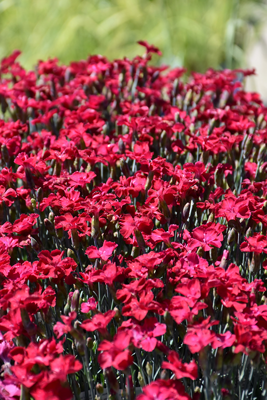 Hardiness Zone: 3a Other Names: Border Pinks, Cheddar Pinks Description: Pretty double red flowers look like miniature carnations; rising above mounds of fine foliage; great for flower arrangements; deadhead to rebloom; pair up with summer blooming perennials and annuals to time a continued flower display Ornamental Features Frosty Fire Pinks is clothed in stunning fragrant double red frilly flowers at the ends of the stems from late spring to mid summer. The flowers are excellent for cutting. Its attractive narrow leaves remain bluish-green in color throughout the year. Landscape Attributes Frosty Fire Pinks is an herbaceous evergreen perennial with a mounded form. It brings an extremely fine and delicate texture to the garden composition and should be used to full effect. This is a relatively low maintenance plant, and is best cleaned up in early spring before it resumes active growth for the season. It is a good choice for attracting bees and butterflies to your yard, but is not particularly attractive to deer who tend to leave it alone in favor of tastier treats. It has no significant negative characteristics. Frosty Fire Pinks is recommended for the following landscape applications; Planting & Growing Frosty Fire Pinks will grow to be only 6 inches tall at maturity extending to 8 inches tall with the flowers, with a spread of 10 inches. When grown in masses or used as a bedding plant, individual plants should be spaced approximately 8 inches apart. Its foliage tends to remain low and dense right to the ground. It grows at a medium rate, and under ideal conditions can be expected to live for approximately 10 years. As an evegreen perennial, this plant will typically keep its form and foliage year-round. This plant should only be grown in full sunlight. It prefers to grow in average to moist conditions, and shouldn't be allowed to dry out. It is not particular as to soil type or pH. It is highly tolerant of urban pollution and will even thrive in inner city environments. This particular variety is an interspecific hybrid. It can be propagated by division; however, as a cultivated variety, be aware that it may be subject to certain restrictions or prohibitions on propagation. Frosty Fire Pinks is a fine choice for the garden, but it is also a good selection for planting in outdoor pots and containers. It is often used as a 'filler' in the 'spiller-thriller-filler' container combination, providing a mass of flowers and foliage against which the thriller plants stand out. Note that when growing plants in outdoor containers and baskets, they may require more frequent waterings than they would in the yard or garden.