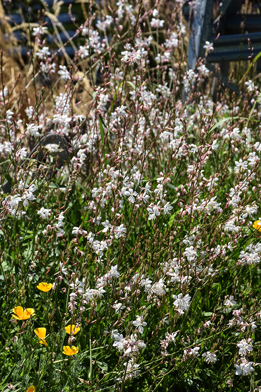 Hardiness Zone: 4b Other Names: Butterfly Gaura; Wand Flower Description: Compact well-branched plants bloom continuosly throughout the season; striking white flowers with a blush of light pink, and dark green foliage on an upright airy plant; lovely when massed in the garden and is great for mixed containers Ornamental Features Whirling Butterflies Gaura features airy spikes of white star-shaped flowers with shell pink overtones rising above the foliage from late spring to early fall, which emerge from distinctive ruby-red flower buds. The flowers are excellent for cutting. Its narrow leaves remain green in color throughout the season. Landscape Attributes Whirling Butterflies Gaura is an open herbaceous perennial with tall flower stalks held atop a low mound of foliage. It brings an extremely fine and delicate texture to the garden composition and should be used to full effect. This is a relatively low maintenance plant, and is best cleaned up in early spring before it resumes active growth for the season. It is a good choice for attracting butterflies to your yard, but is not particularly attractive to deer who tend to leave it alone in favor of tastier treats. It has no significant negative characteristics. Whirling Butterflies Gaura is recommended for the following landscape applications; Planting & Growing Whirling Butterflies Gaura will grow to be about 12 inches tall at maturity extending to 18 inches tall with the flowers, with a spread of 12 inches. When grown in masses or used as a bedding plant, individual plants should be spaced approximately 10 inches apart. Its foliage tends to remain dense right to the ground, not requiring facer plants in front. It grows at a fast rate, and under ideal conditions can be expected to live for approximately 8 years. As an herbaceous perennial, this plant will usually die back to the crown each winter, and will regrow from the base each spring. Be careful not to disturb the crown in late winter when it may not be readily seen! This plant does best in full sun to partial shade. It is very adaptable to both dry and moist growing conditions, but will not tolerate any standing water. It is not particular as to soil type or pH. It is somewhat tolerant of urban pollution. Consider applying a thick mulch around the root zone in winter to protect it in exposed locations or colder microclimates. This is a selection of a native North American species. It can be propagated by cuttings; however, as a cultivated variety, be aware that it may be subject to certain restrictions or prohibitions on propagation. Whirling Butterflies Gaura is a fine choice for the garden, but it is also a good selection for planting in outdoor pots and containers. It is often used as a 'filler' in the 'spiller-thriller-filler' container combination, providing a mass of flowers against which the larger thriller plants stand out. Note that when growing plants in outdoor containers and baskets, they may require more frequent waterings than they would in the yard or garden.![]()
